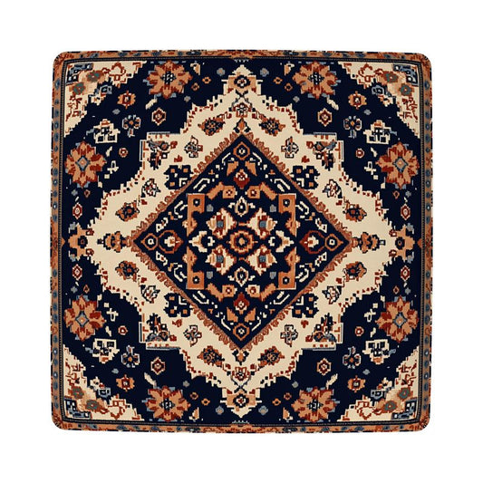 Boho Round Tribal Vanity Stool – Custom Upholstered Pouf Footstool for Bedroom, Living Room, or Entryway Décor