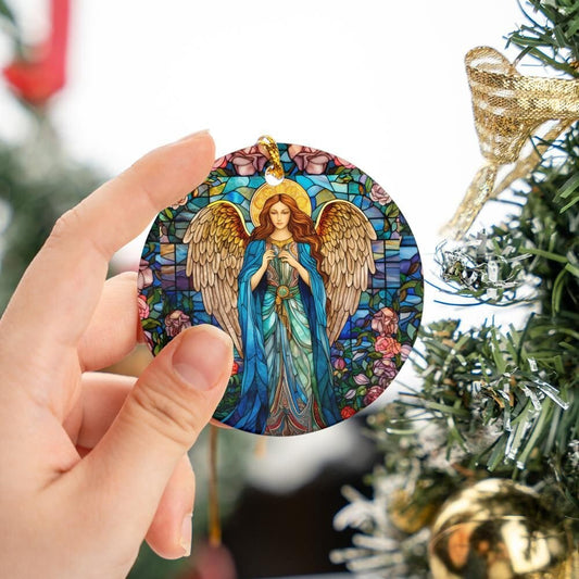 Angel Christmas Decoration, Porcelain Angel Christmas decoration, Christmas ornament, Stain Glass look, Custom Design, Round Porcelain