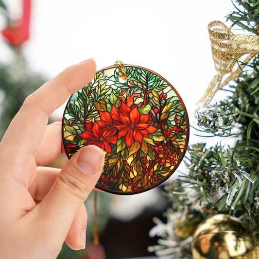 Poinsettia Christmas Decoration, Poinsettia Porcelain Christmas decoration, Christmas ornament, Stain Glass look, Custom Design Poinsettia